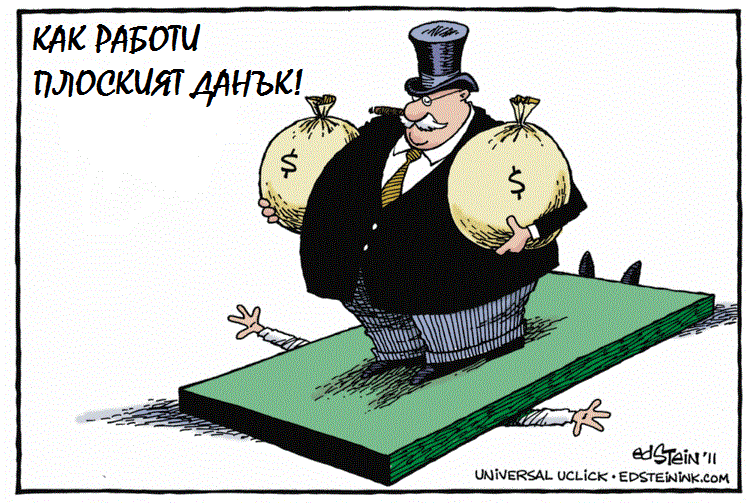 – плоският данък облагодетелства високодоходните групи, като им предостави допълнителен ресурс от лични доходи, който те ползват по свое усмотрение, главно за луксозно потребление с непроизводителен характер; респективно, отмени традиционното за ЕС задължение на заможните слоеве да поемат по-висок дял и принос в държавния бюджет, с което да подпомагат сектора на публичните услуги и социалните разходи на държавата;